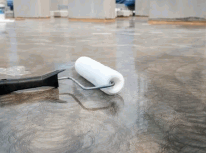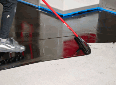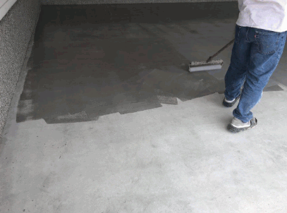 After the floor is clean and dry, the next step in the epoxy flooring installation is to apply an epoxy primer, which serves as a bonding agent for the subsequent coating. Following the application instructions provided with your epoxy kits, use a paintbrush to carefully apply the primer along edges and corners, and then use a roller extension for even coverage over the larger areas of the floor. This primer layer is essential for ensuring the longevity and waterproof coating properties of the epoxy system.