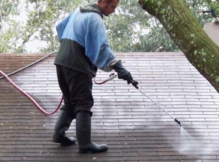 - Clear the area surrounding the roof prior to washing, which may involve roof debris removal and gutter repair.